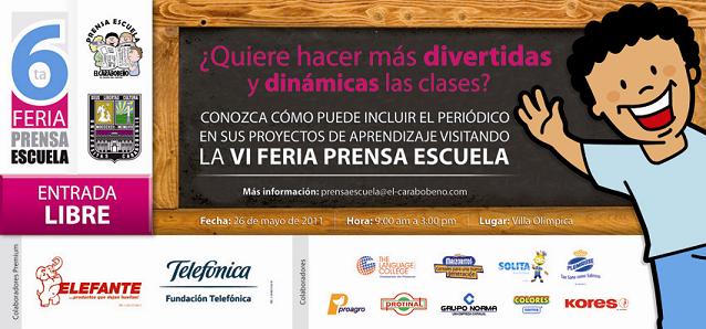 ¿Quiere hacer más divertidas y dinámicas las clases? Conozca cómo puede incluir el periódico en sus proyectos de aprendizaje visitado la 6ta Feria de Prensa Escuela. Fecha: 26 de mayo de 2011. Hora: 09:00 am. a 03:00 pm. Lugar: Villa Olimpica